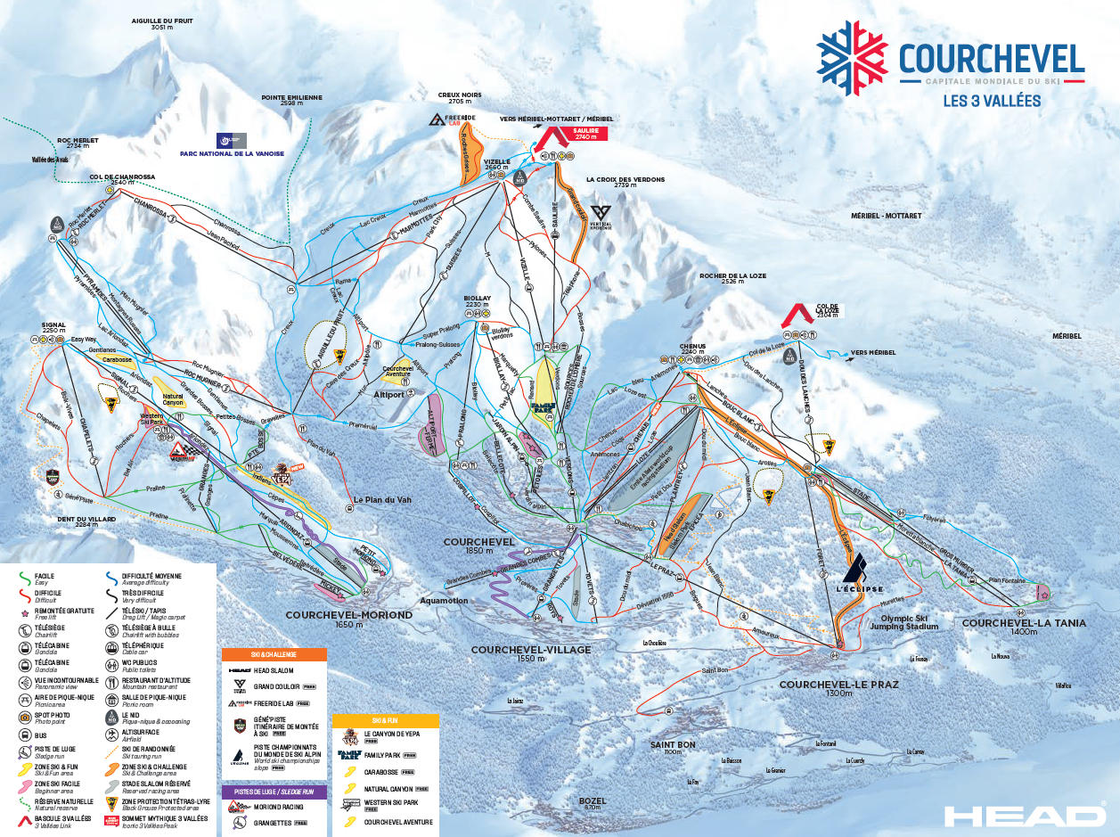 Renowned as a celebrity hotspot with amazing alpine skiing, Courchevel is part of the Les 3 Vallées ski area, one of the biggest interconnected ski areas in the world. At Courchevel, ski terrain is spread over five villages and altitudes ranging in heights from 1,350 metres up to 2,738 metres. Here you will discover an authentic French mountain village with unique and varied alpine and forest ski terrain.