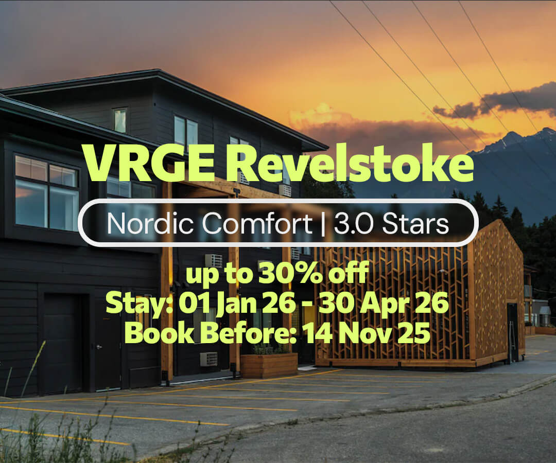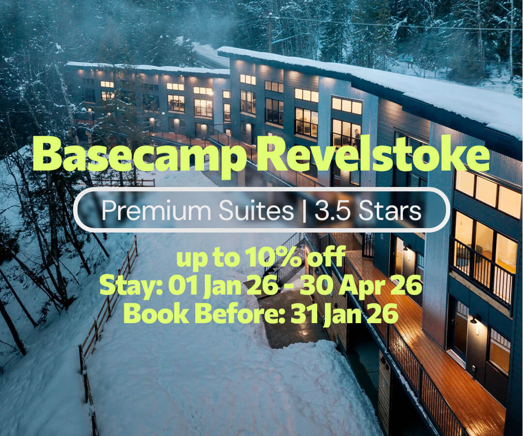 Nestled just outside downtown Revelstoke with sweeping views of the Columbia River, Basecamp Resorts Revelstoke offers modern, premium and fully‑equipped suites (from cosy micro‑studios to 5‑bedroom family fits) that feel like home after a day on the snow.